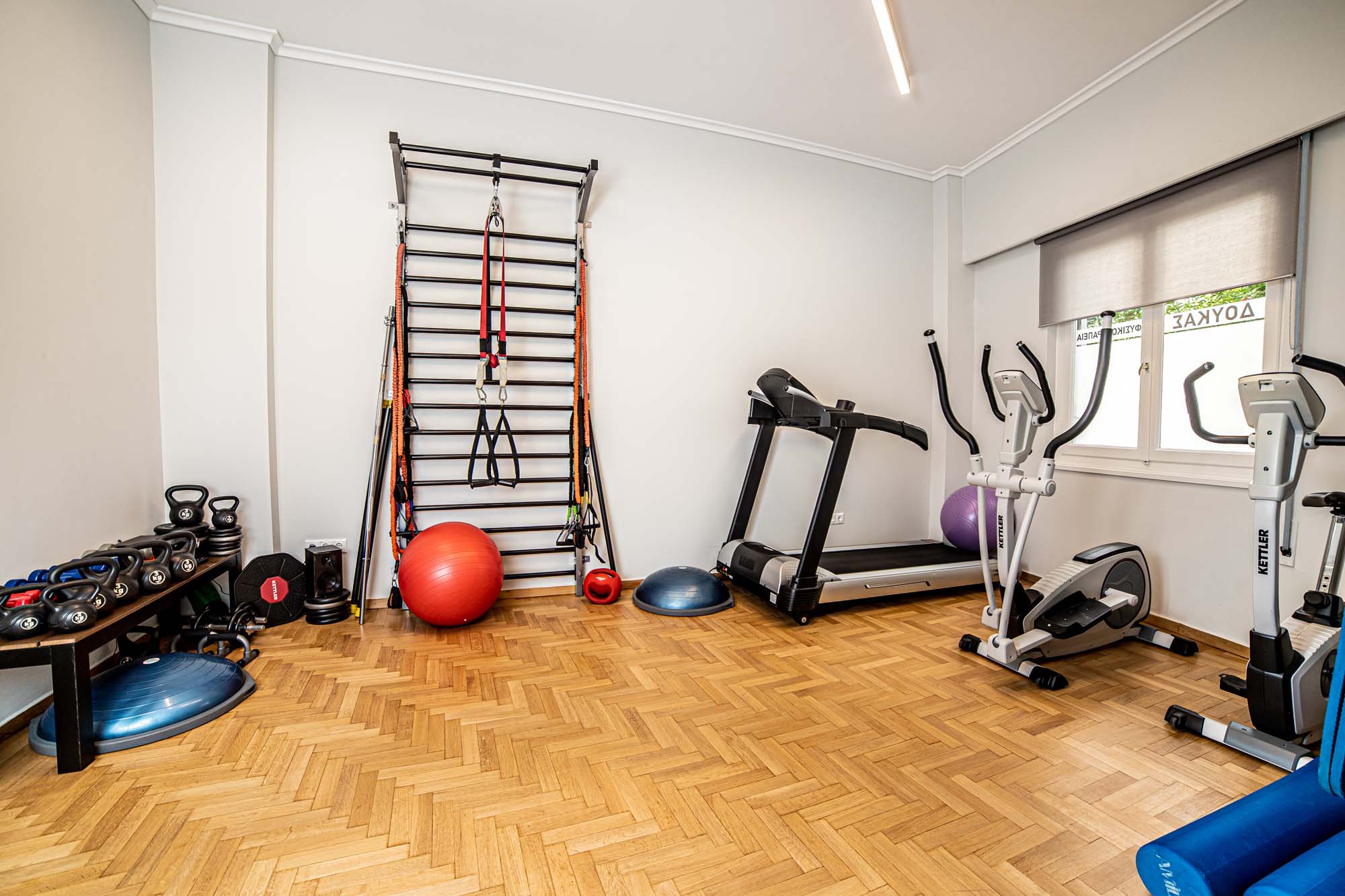 Το φυσικοθεραπευτήριο, διαθέτει έναν πλήρως εξοπλισμένο χώρο γυμναστηρίου, κατάλληλο τόσο για λειτουργική αποκατάσταση και θεραπευτική άσκηση, όσο και για ατομική προπόνηση δύναμης και αντοχής.